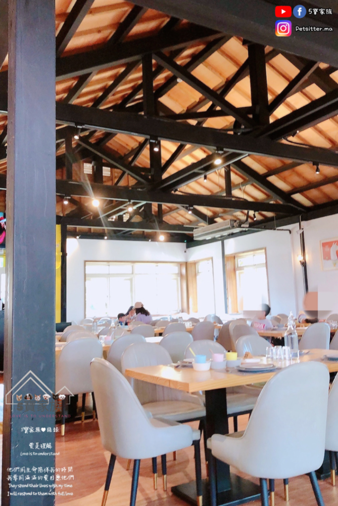 建築物為挑高的設計。餐廳內的空間感很夠!每張餐桌椅間距離也擺放的讓人沒有壓迫感。這裡蠻適合提供家庭聚會或是多人聚會的活動。