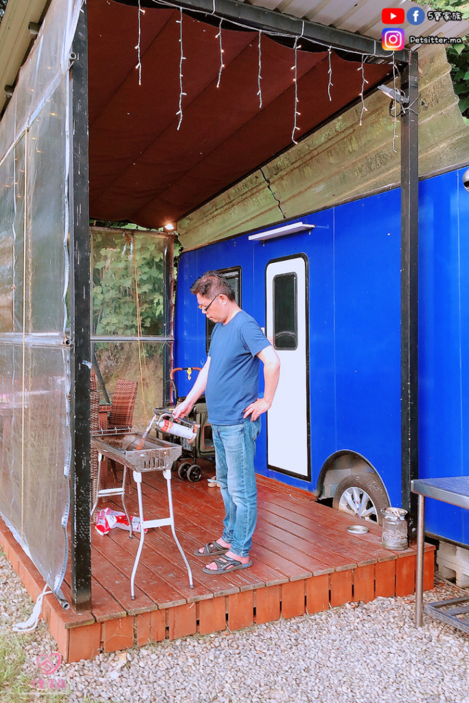 休息夠了~我們要回露營車內整理行李。呼啦莊園Hulagarden的露營區域規劃明確,像5寶家族這次是帶著寶雅來,就選擇了寵物露營車(總共有2台規劃給帶毛小孩來玩的露客)。
