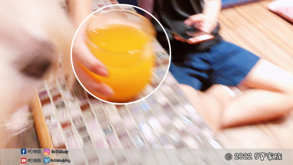 隨後,端出了果汁和水果。小朋友早已回房間休息,只好端回房間休息一會兒再享用。