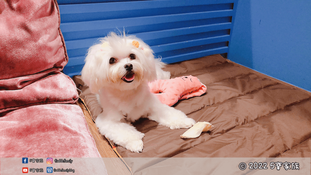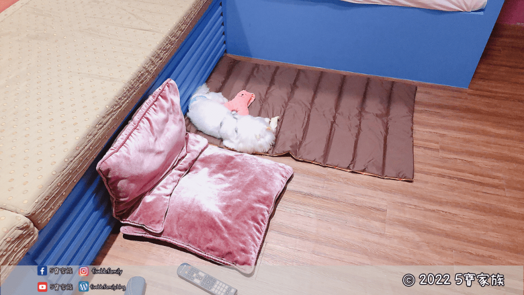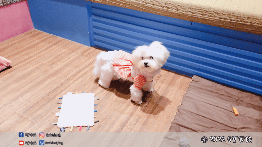 小朋友們很喜歡這個空間,包含了毛小孩也是。毛小孩們進入室內空間之前,5寶阿目已經事先包起尿布。畢竟他們在新環境都會想要發一下名片(做記號),所以已經事先在家裡做過特訓。讓他們習慣在除了自己家之外的室內空間都要包尿布。