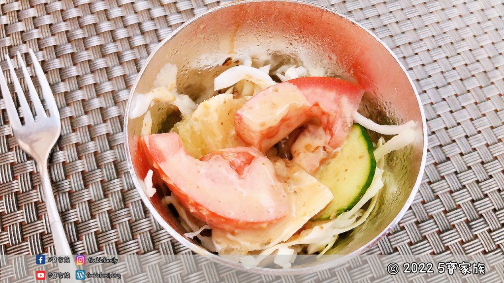 5寶阿目是預訂2人份,擔心5寶姐姐吃不完⋯前面就先來盤蔬食料理。讓大家開開胃,第二道則是烤魚料理,魚的外皮焦黃酥脆,而魚肉好軟嫩細緻。
