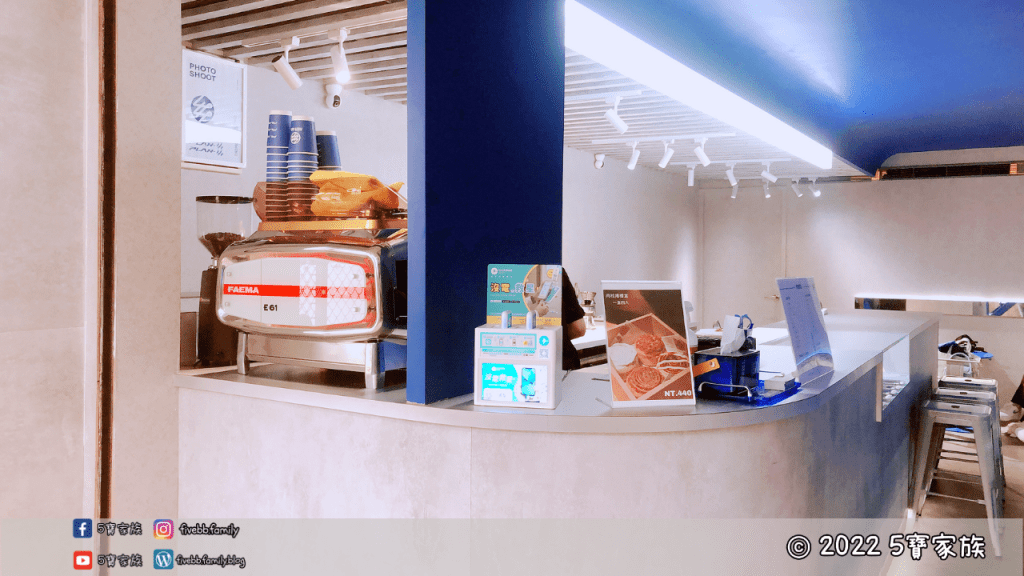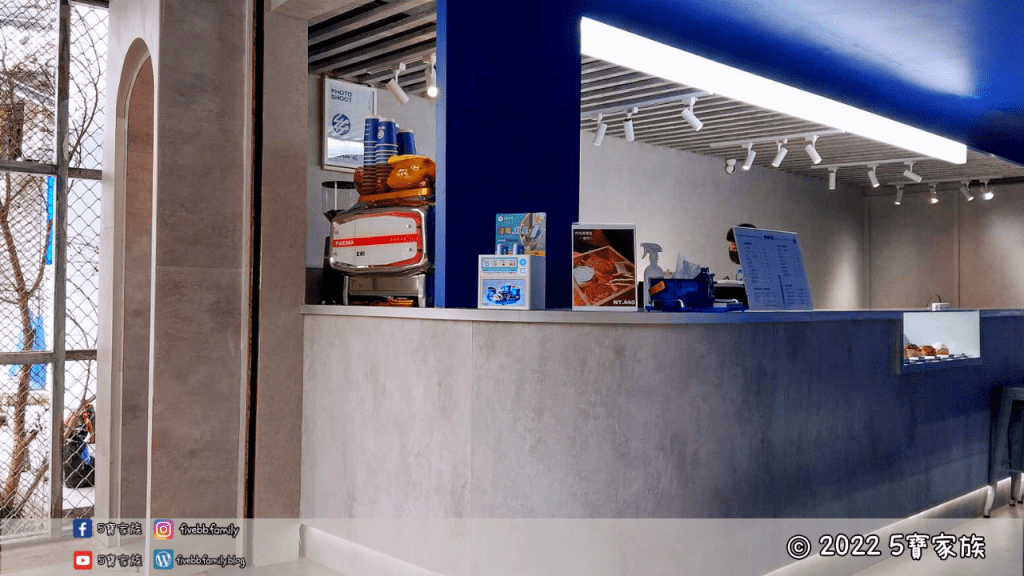 添加了藍色的LOGO、燈飾、桌椅。牆面所有的轉角也都以圓弧設計,以工業風的角度修飾,讓原本老舊空間變得更新穎。