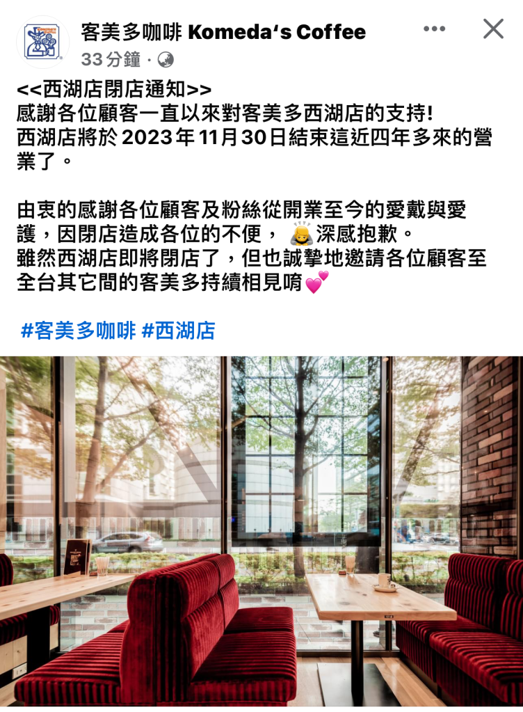 客美多咖啡 西湖店 Komeda’s Coffee 已閉店。 若想品嚐客美多咖啡的咖啡及餐點請至其他分店喔!