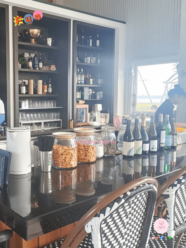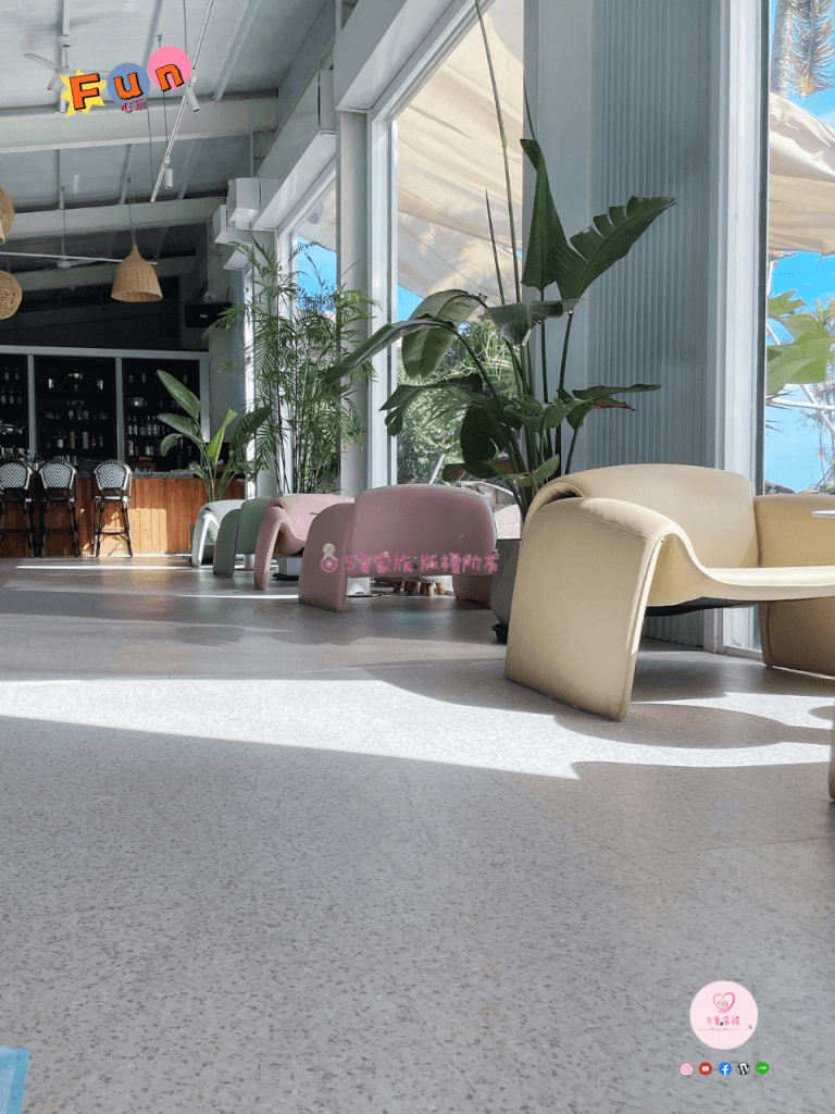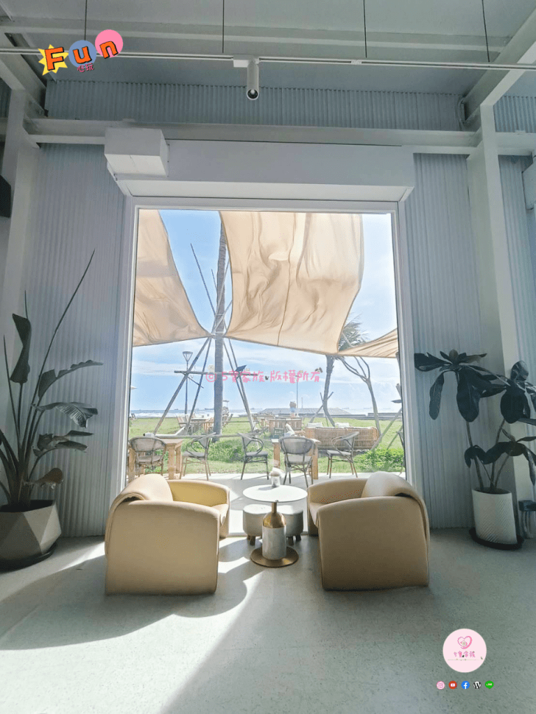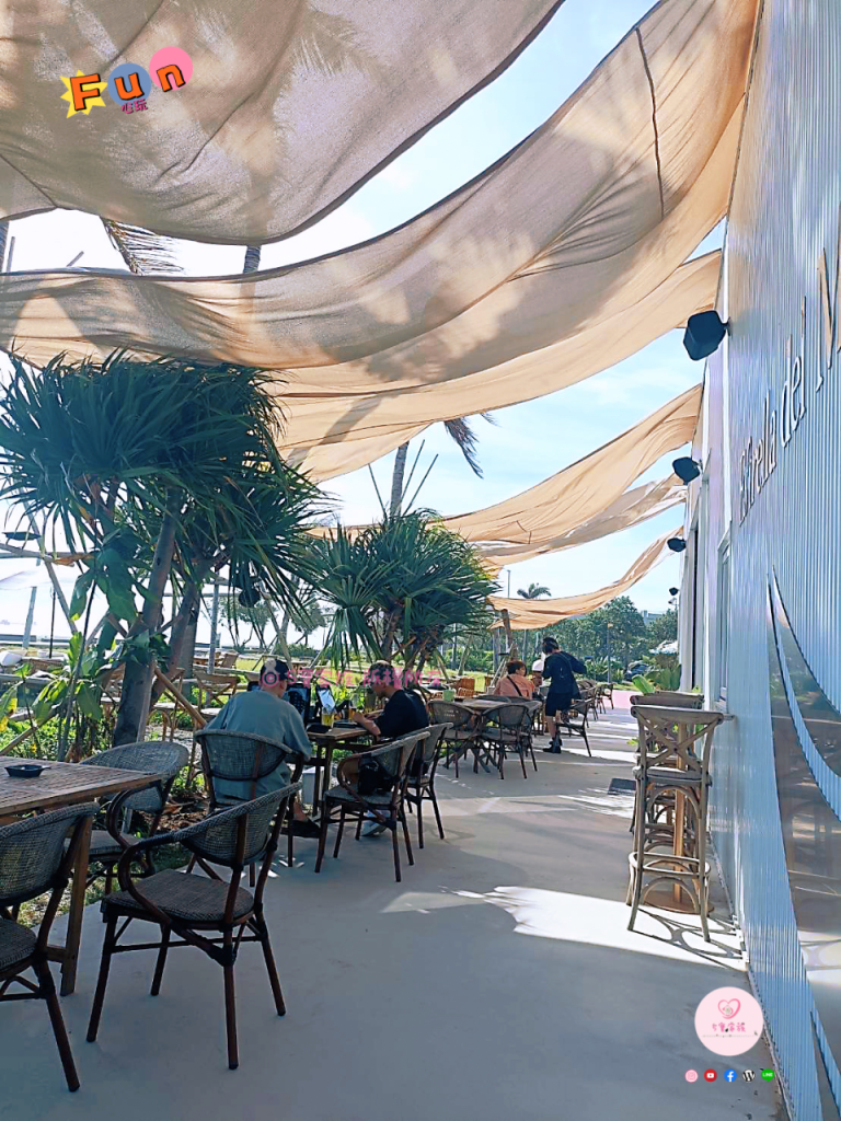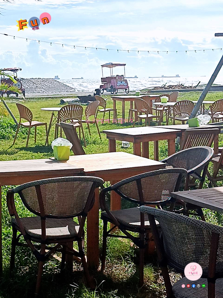純白色貨櫃造型,旗津網美打卡餐廳。在這裡享用美食就像是到了國外海邊的渡假沙灘一樣!