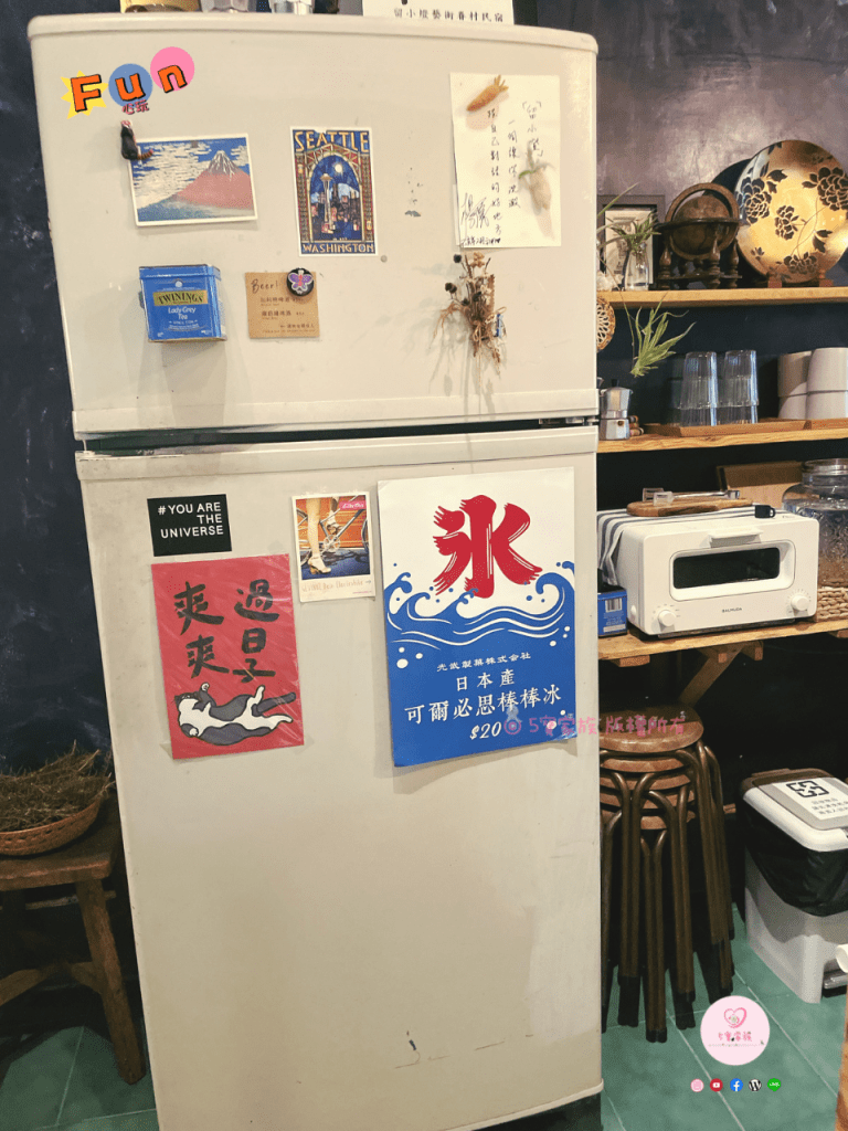 冰箱內部也有提供一些飲品、冰品,付費方式就像是誠實商店概念般。請住客將費用自行投入冰箱上的小鐵盒內。