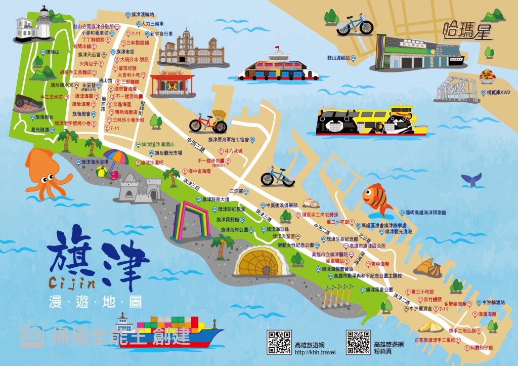 - 交通方式:到旗津交通,搭旗津渡輪最方便,開車穿過「過港隧道」也行。