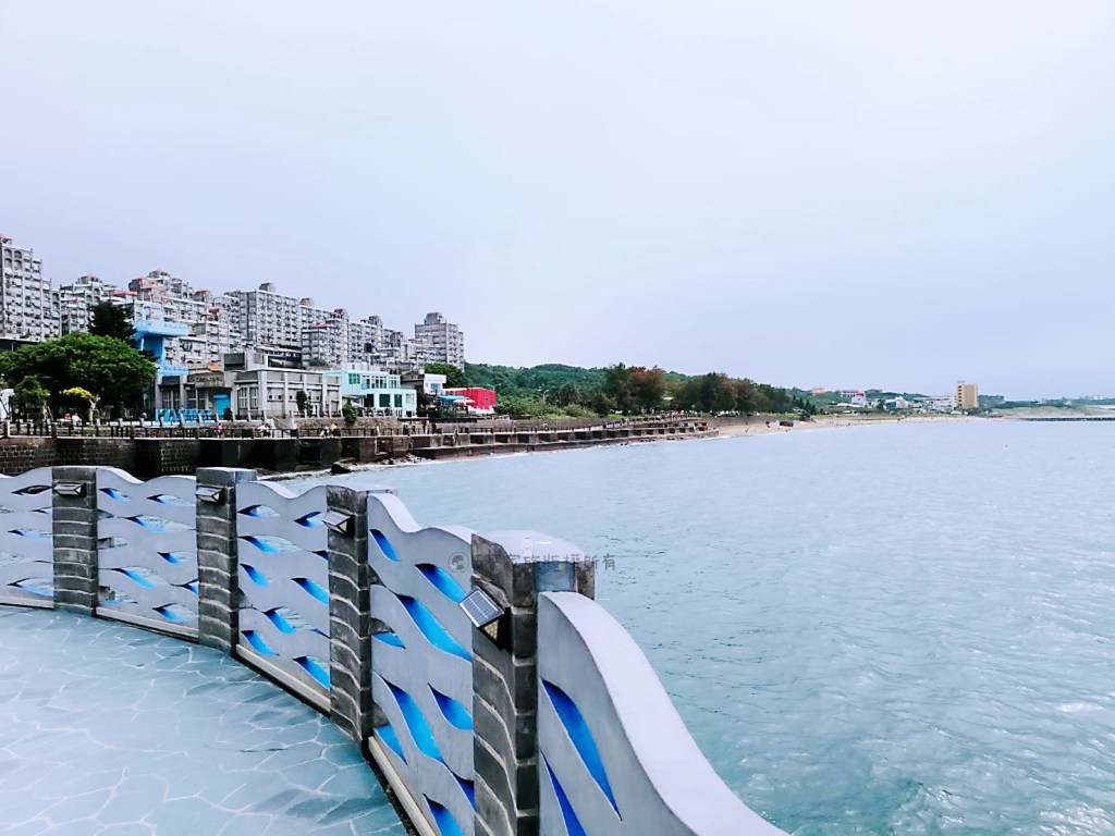 如今重建的海上觀景平台,是以原本的平台基座在上面新建觀景台,長約57公尺的水藍色長廊,終點設有超大型閃亮的婚戒。