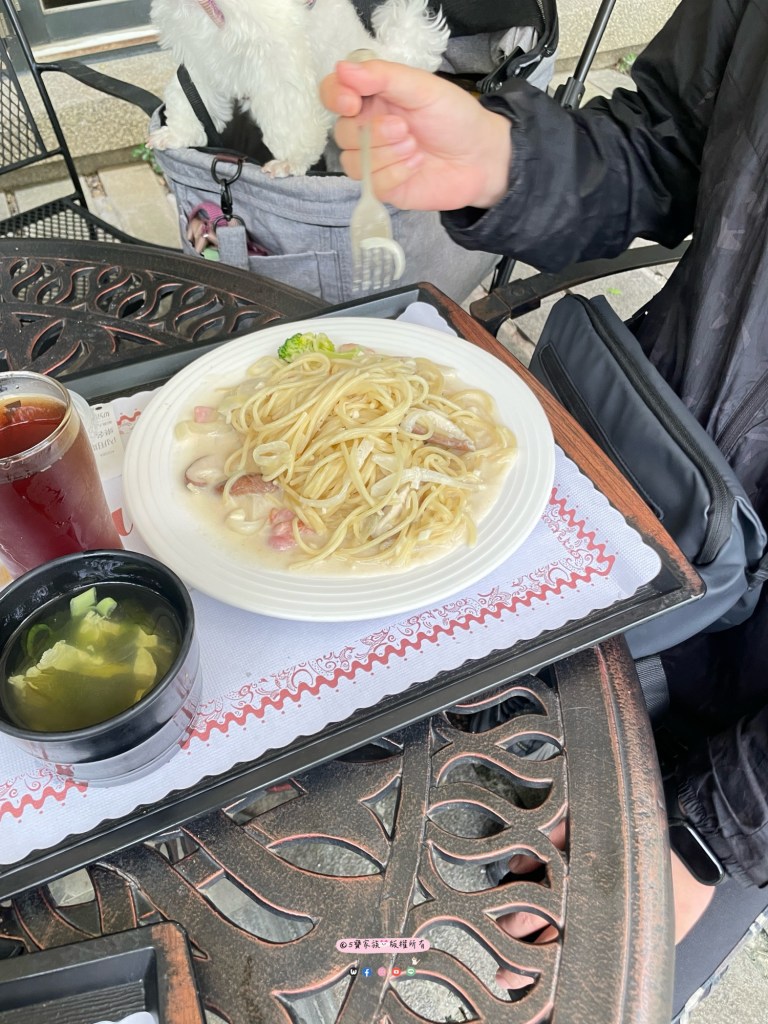 水榭樓台咖啡館的室內是不可以帶寵物進去的喔!所以我們就選擇在他們的戶外區用餐。