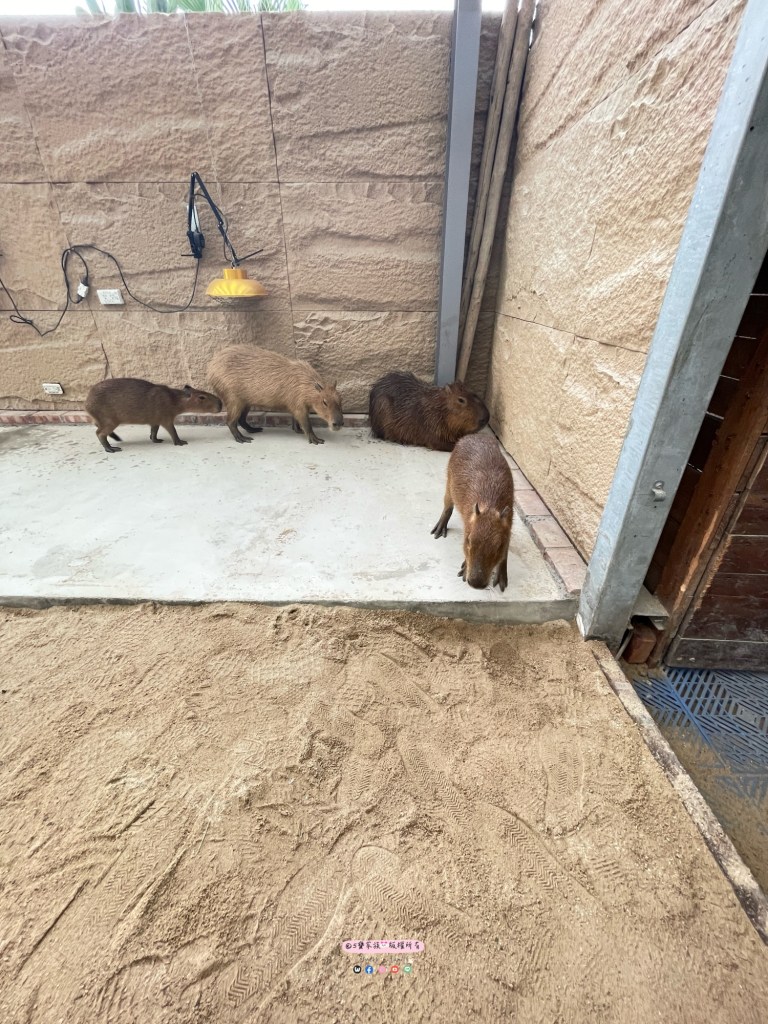 水豚家族和巨大蘇卡達象龜、梵天雞都和人的互動很頻繁。照護的工作人員都會很親切的在一旁解說各個小動物的名字、個性及可以吃的食物。這讓人可以確切了解他們,也能避免不小心誤食不適合的食物。