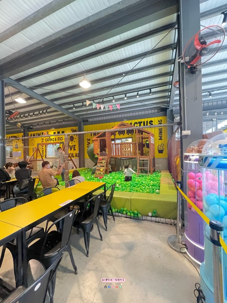 延續著建築亮眼的黃色系,室內也規畫了坐位區。還有兒童遊戲區,帶小朋友來玩的家長也可以稍稍讓小朋友放電!